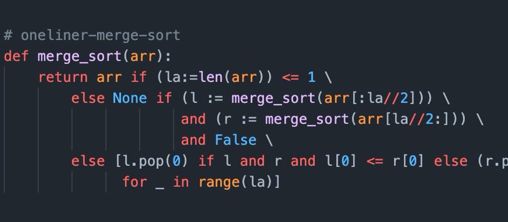 ワンライナーでマージソートを実装したい(Python3)Pythonはインデントで構造化されている設計上、ワンライナー(一行だけで動作するコード)を書くことが難しい言語ですが、だからこそPythonでのワンライナーは面白いのです。Posted on 2022-04-14プログラミング